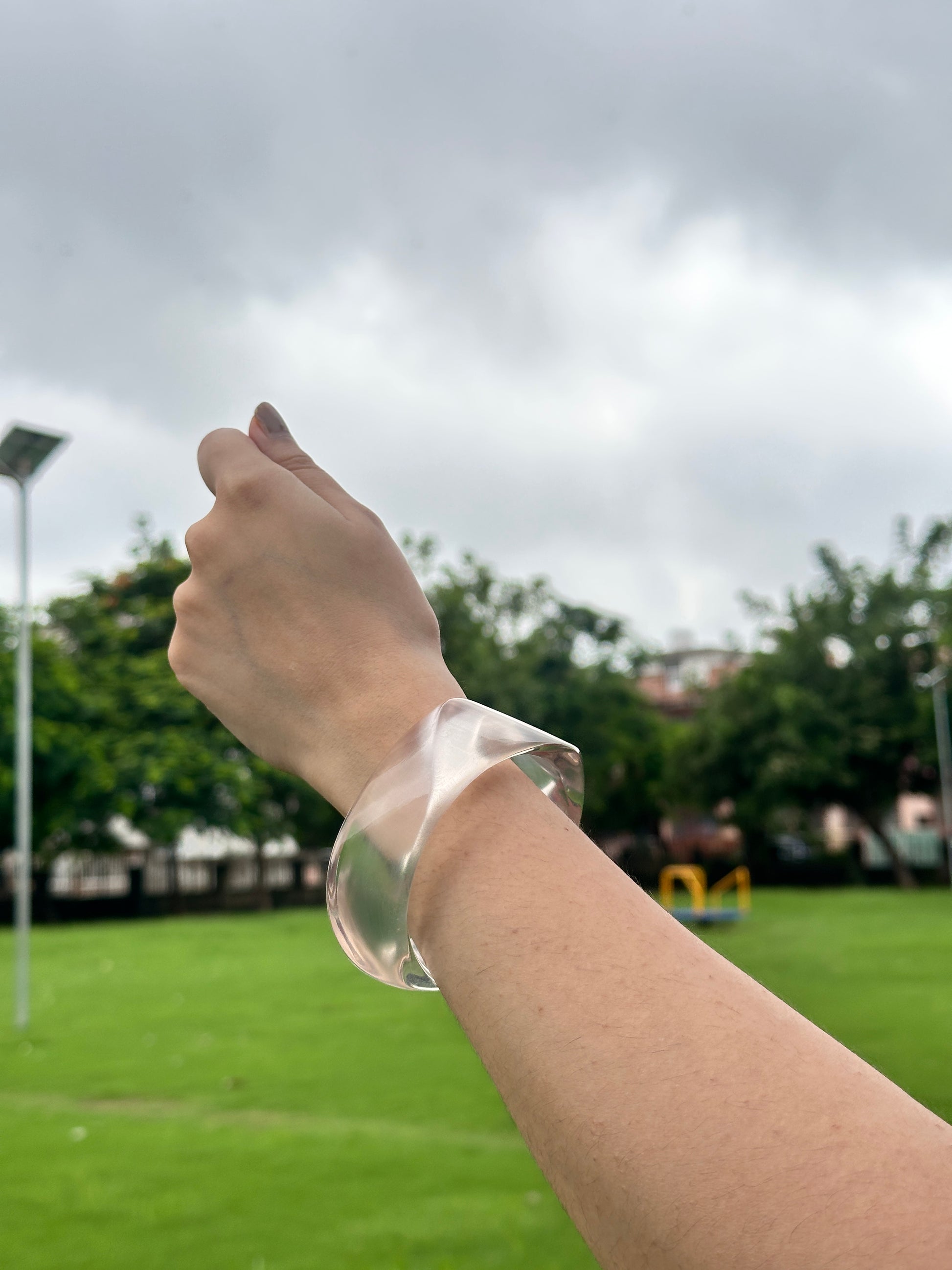 A timeless accessory with a modern twist. This clear resin bangle adds effortless elegance to your look. Its transparent, glossy finish makes it versatile to pair with both minimal everyday outfits and festive wear.