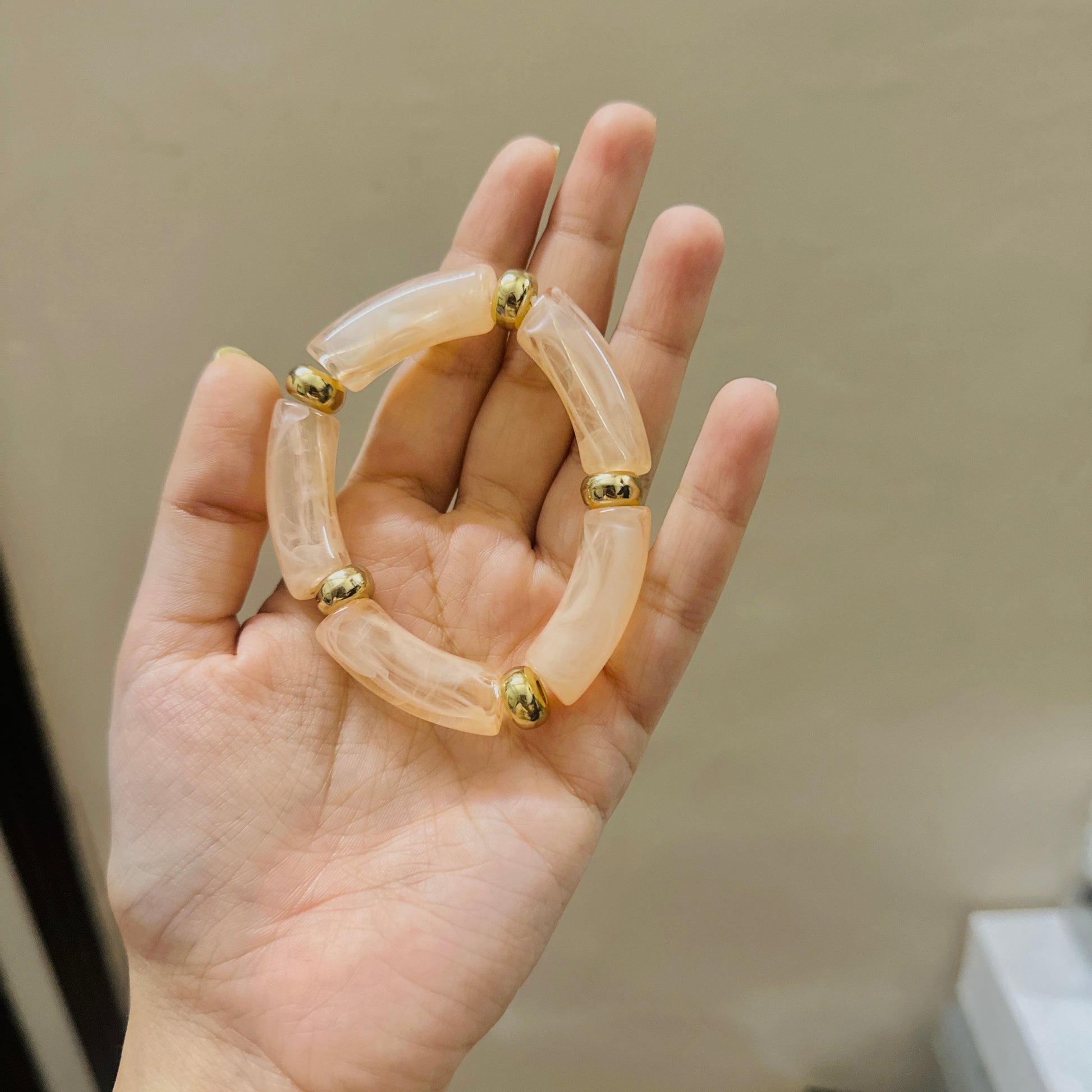 Handcrafted resin stretchable bracelets with dreamy swirls and glossy finishes.